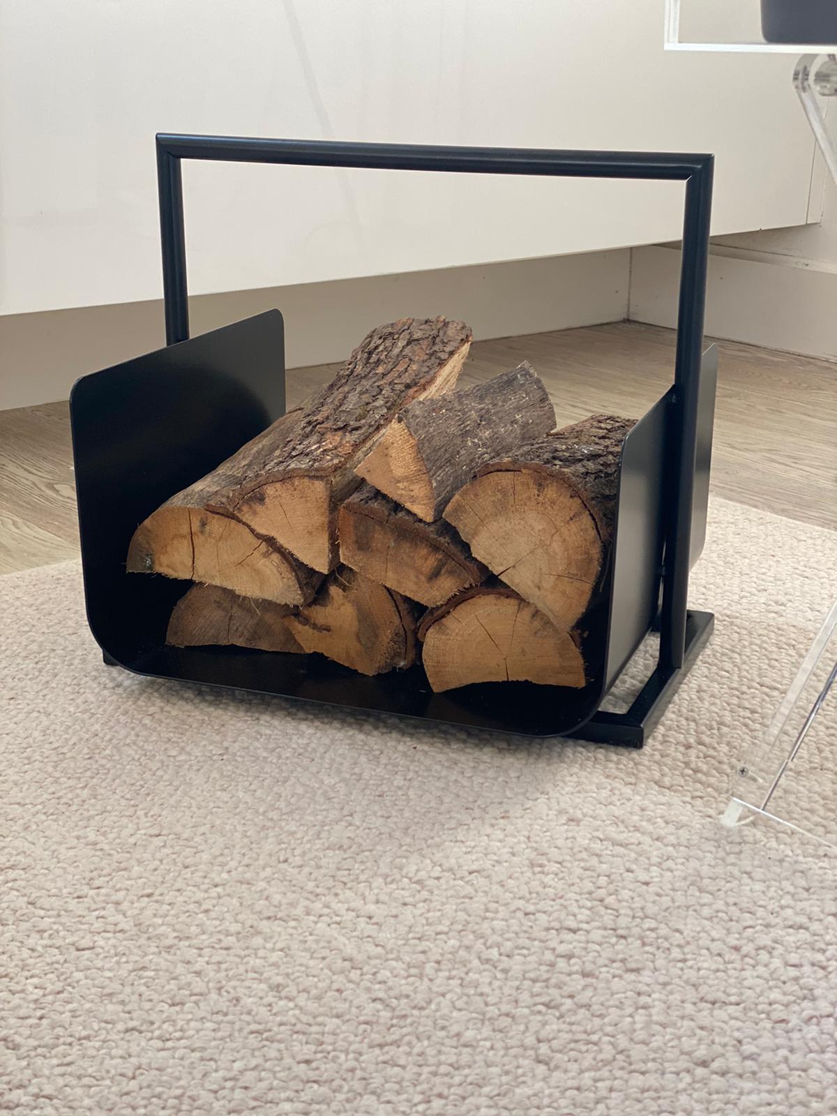 Portalegna 430x430x370 realizzato in s 235 jr verniciato a polveri RAL 9005 nero opaco.